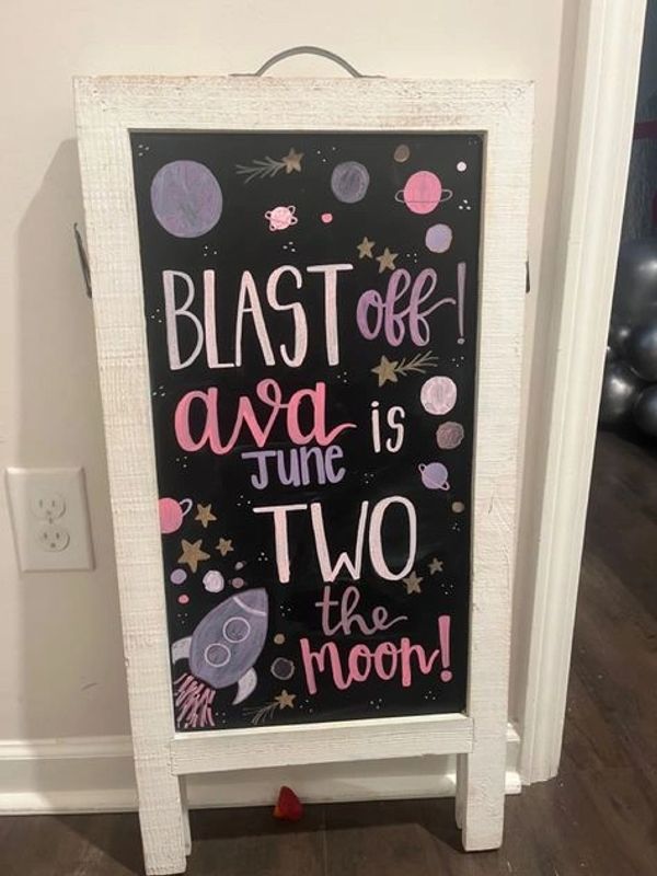 Custom calligraphy chalkboard signs, hand painted banners, and graphics by Pretty Party Co.